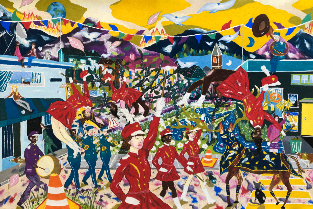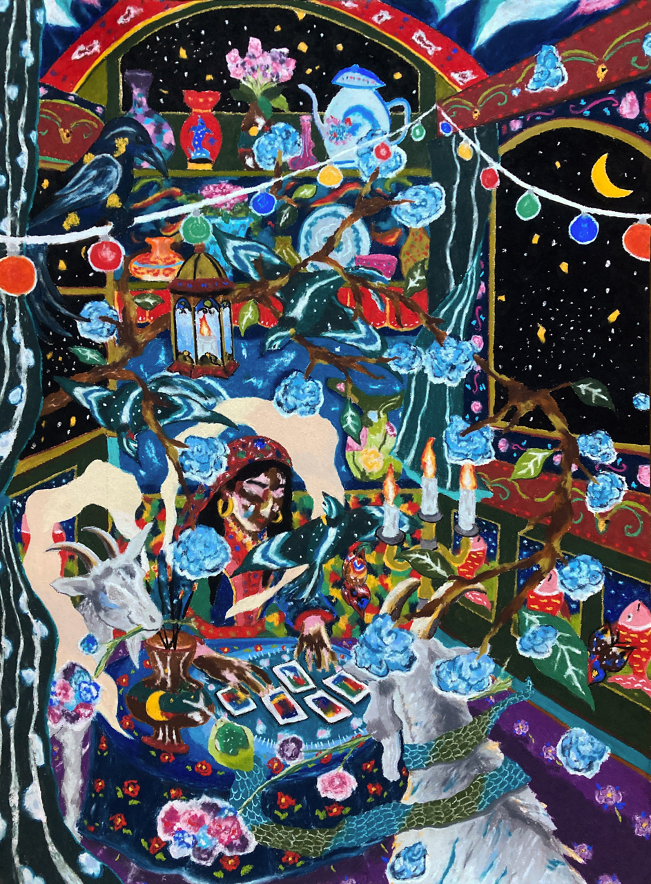 « À l’œil nu, les pastels secs de Micky Clément s’appréhendent comme un livre d’images empreint de la poésie inoffensive du monde de l’enfance, dont il nous ouvre les portes. Ce n’est qu’à l’intérieur de la citadelle que l’on réalise qu’elle est assiégée. Face à la guerre du monde contemporain, l’artiste capitule. À l’abri d’un palais de lumières végétales, il a tendu ses murs de papiers peints aux couleurs tendres, et passe ses jours à l’affut d’un bonheur inquiet.